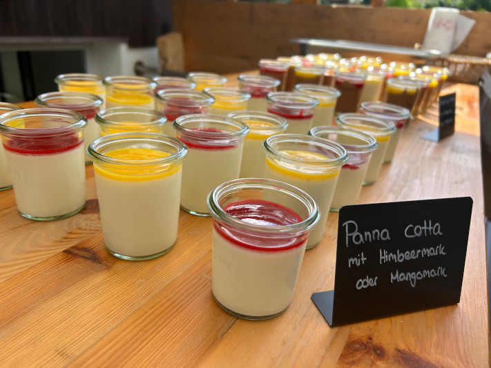 - Panna Cotta im Glas mit Mango oder Waldfrüchten