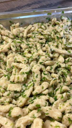 mit Honig-Senf Soße - Schmandkartoffel, Spätzle